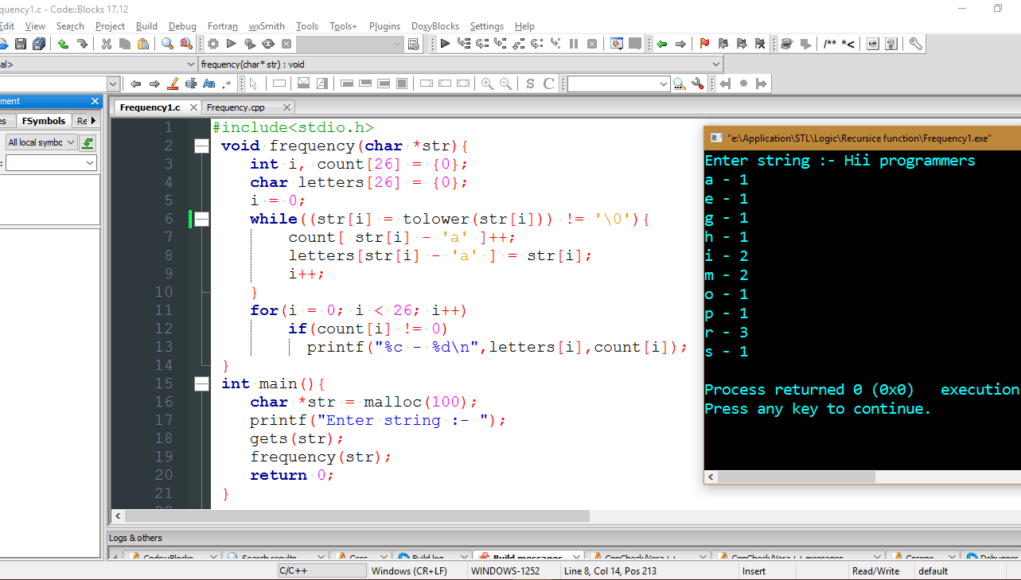 Example 2: Find Frequency of Characters in a C-style String